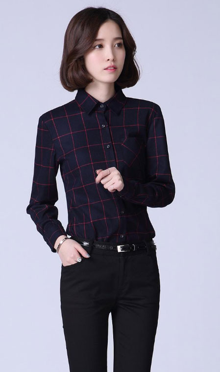 格子襯衫和黑色休閑褲的搭配很簡單,這種搭配方法不但休閑,同時也顯正式,干練、有魅力,如果你是職場女生,不妨可以這樣搭配美美的上班哦。